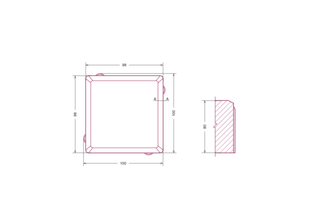 Kuba 8. Vienas mažiausių UAB Betono mozaika gaminių (kartu su Kuba 8B). Nuo Kuba 8B skiriasi nuožula – Kuba 8 nuožula yra standartinė, o Kuba 8B – sumažinta, suapvalinta nuožula.